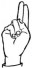 На ћирилици написано РАНИСЛАВА ГОНЕВ састоји се из 14 слова [?]. Исписано ћириличном једноручном азбуком за глувонеме: